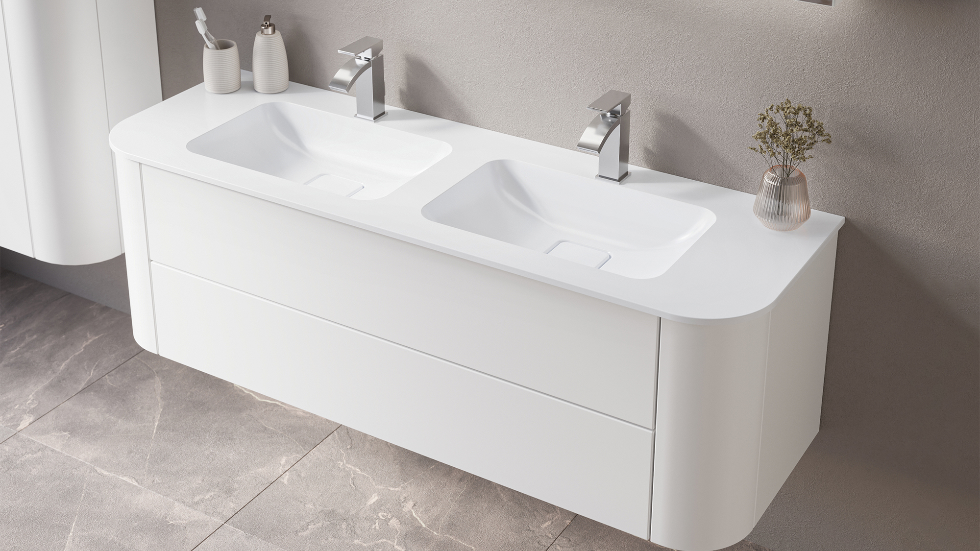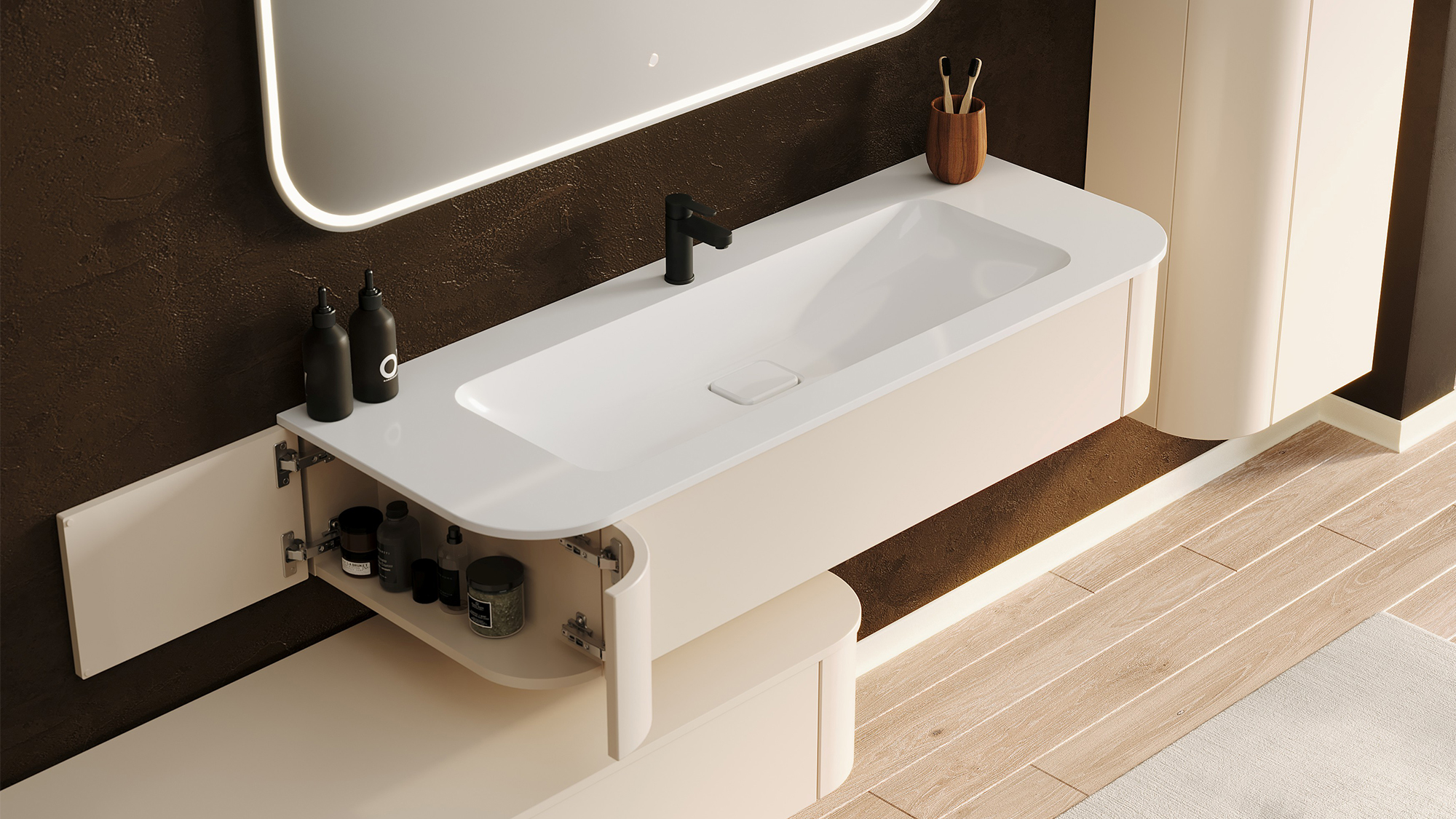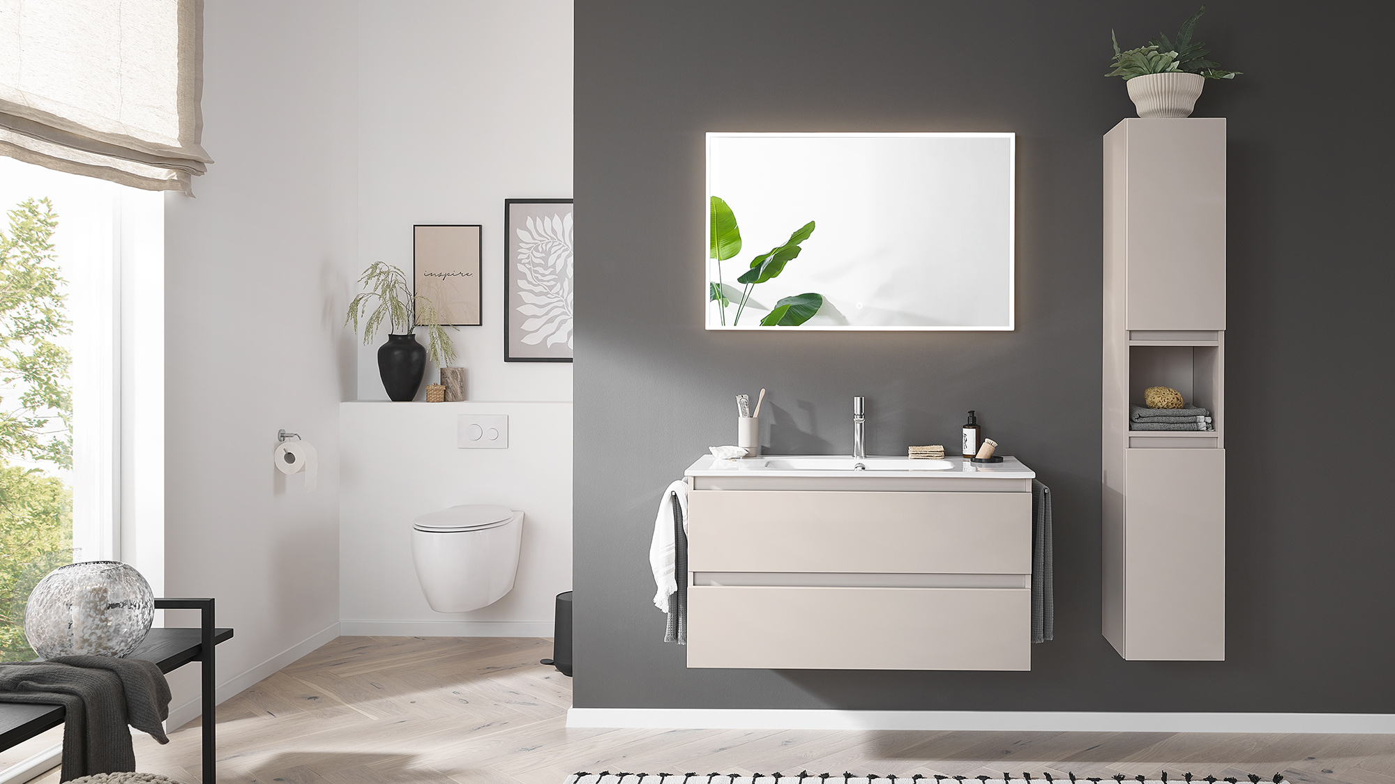 Elegante CeraSolid Waschtischplatten sowie innovative STONEPLUS Möbelwaschtische stehen zur Auswahl. Neben der ästhetischen Formensprache überzeugt das Programm mit großzügigem Stauraum, der durchdacht in die Möbel integriert ist. Hochwertige Materialien und eine angenehme Haptik sorgen dafür, dass Veluna nicht nur optisch begeistert, sondern auch langlebig Freude bereitet.
