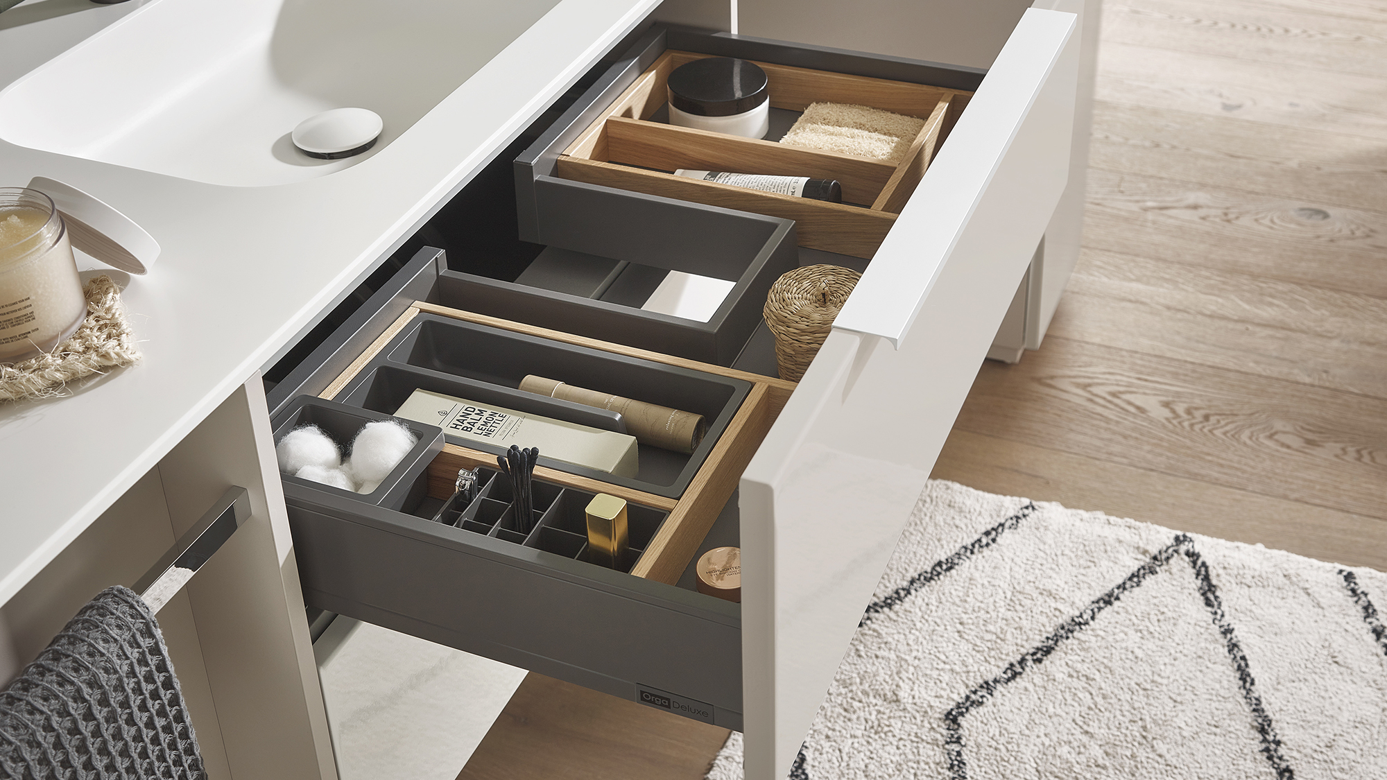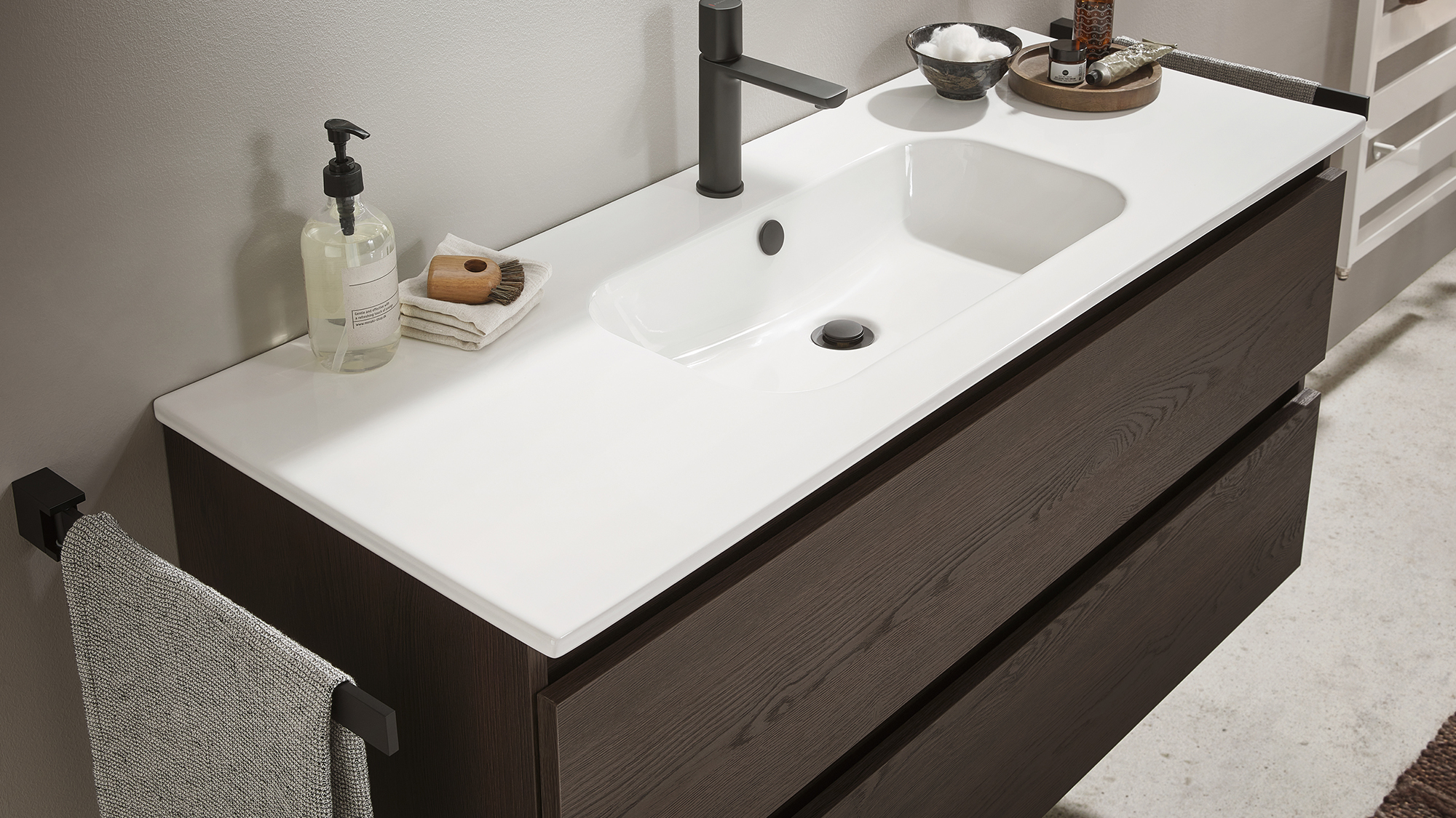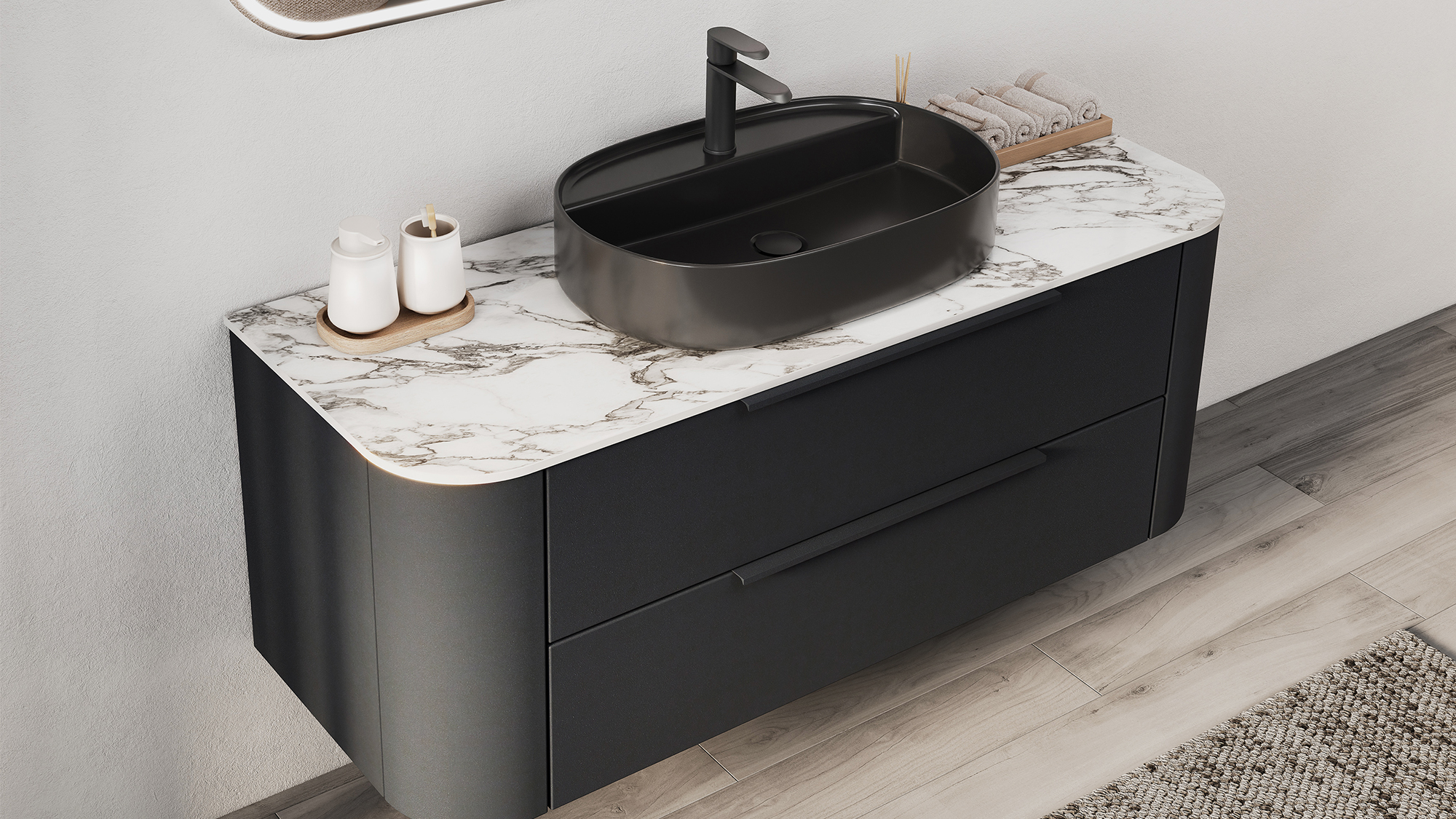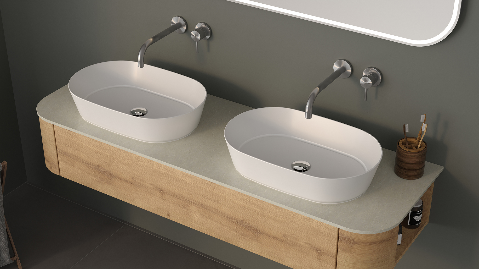 Elegante CeraSolid Waschtischplatten sowie innovative STONEPLUS Möbelwaschtische stehen zur Auswahl. Neben der ästhetischen Formensprache überzeugt das Programm mit großzügigem Stauraum, der durchdacht in die Möbel integriert ist. Hochwertige Materialien und eine angenehme Haptik sorgen dafür, dass Veluna nicht nur optisch begeistert, sondern auch langlebig Freude bereitet.